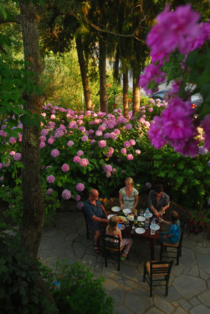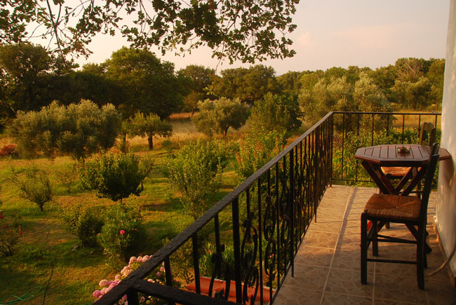 Τα δωμάτιά μας βρίσκονται στα Θέρμα σε πολύ μικρή απόσταση από τους καταρράκτες και την θάλασσα. Εδώ θα απολαύστε την ησυχία και το ευχάριστο κλίμα των Θέρμων. Το σπίτι μας περιστοιχίζεται από πολυάριθμα δέντρα που χαρίζουν την σκιά τους σε όλο μας το κτήμα. Χαλαρώστε στην αυλή μας, απολαύστε το πρωινό ή τον καφέ σας σε ένα άνετο οικογενειακό περιβάλλον. Μια διαδρομή 5 λεπτών με τα πόδια, σας χωρίζουν από το κέντρο του χωριού όπου βρίσκονται εστιατόρια, καφενεία, super market, φούρνος και άλλα μαγαζιά για να προμηθευτείτε ότι χρειάζεστε.